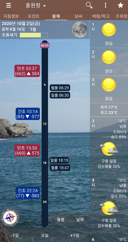 오늘은 간단하게 물때를 보는 법을 알려주려고 한다!