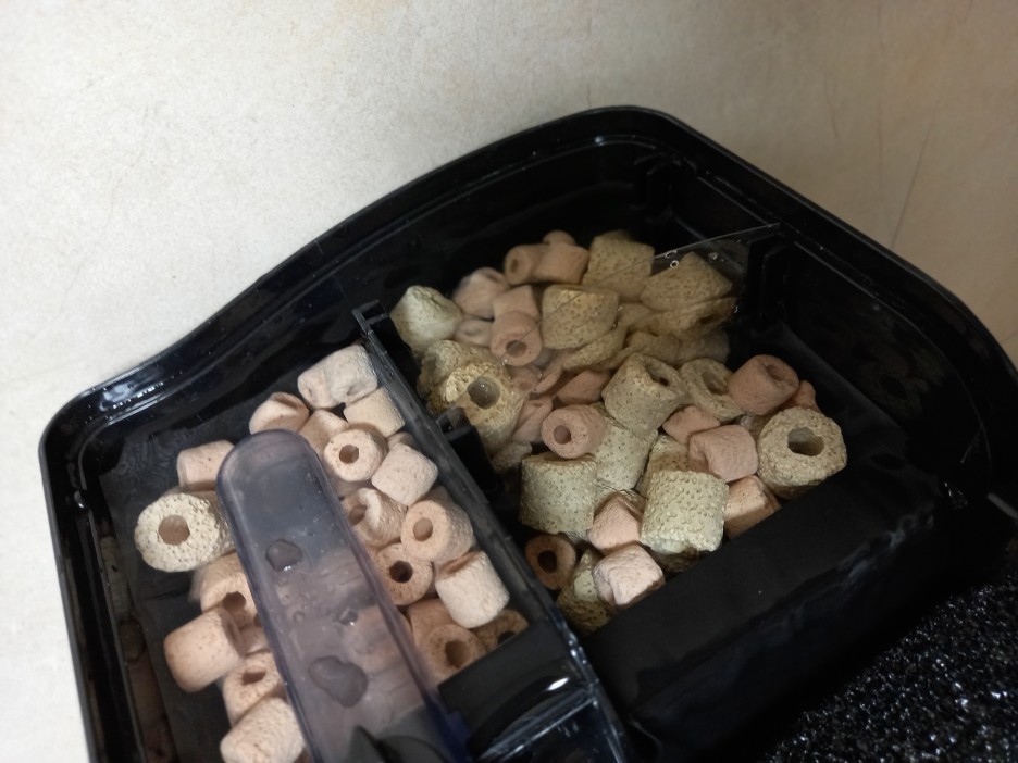 먼저 여과기의 여과재를 빼서 어항 물로 살짝 씻어줬습니다!