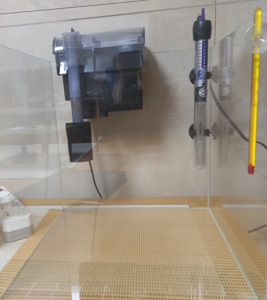다 닦고 안에 히터기와 온도계, 여과기를 넣어 주었어요ㅎㅎ