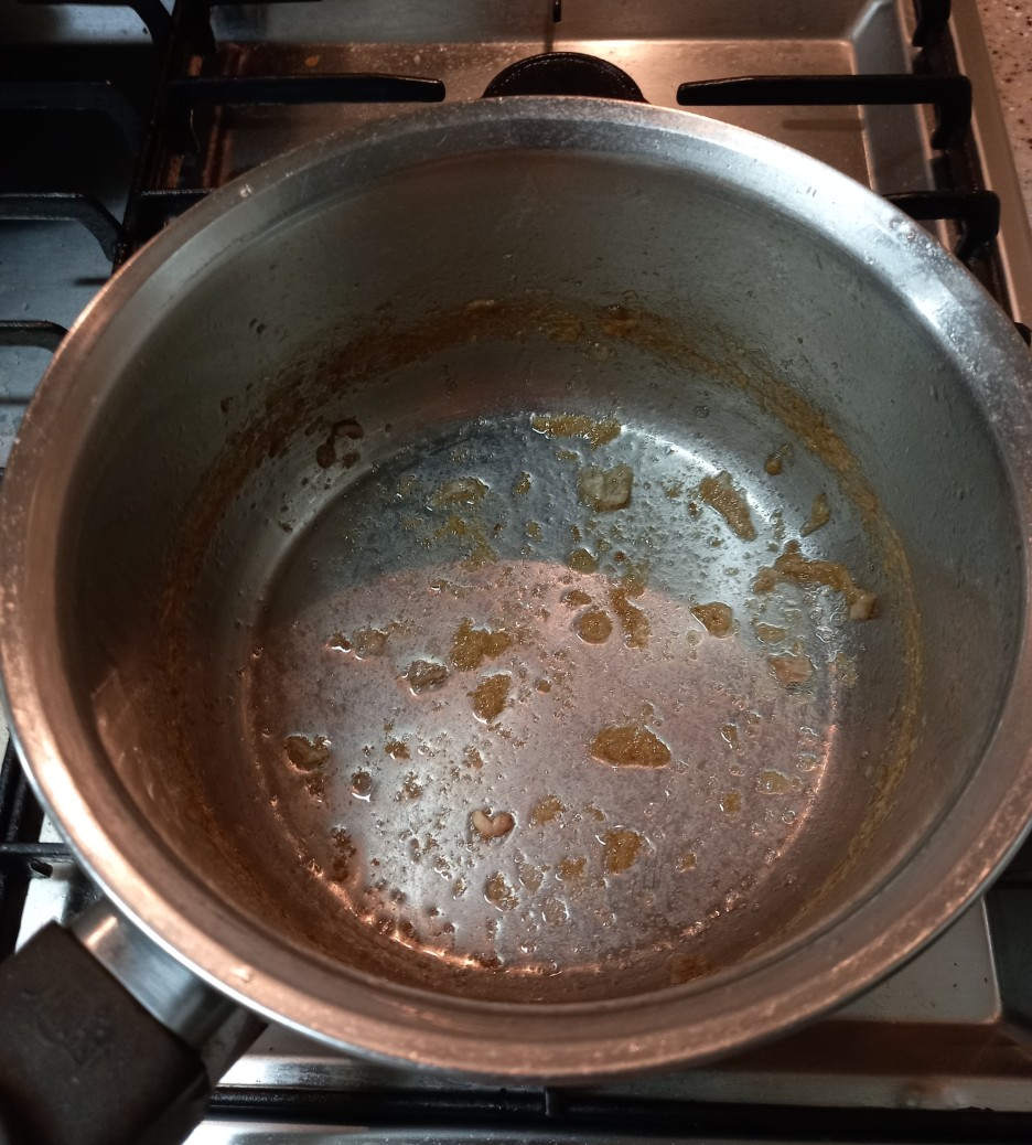기름을 빼고 나면 저렇게 냄비에 눌어붙은 것들이 있을 거예요