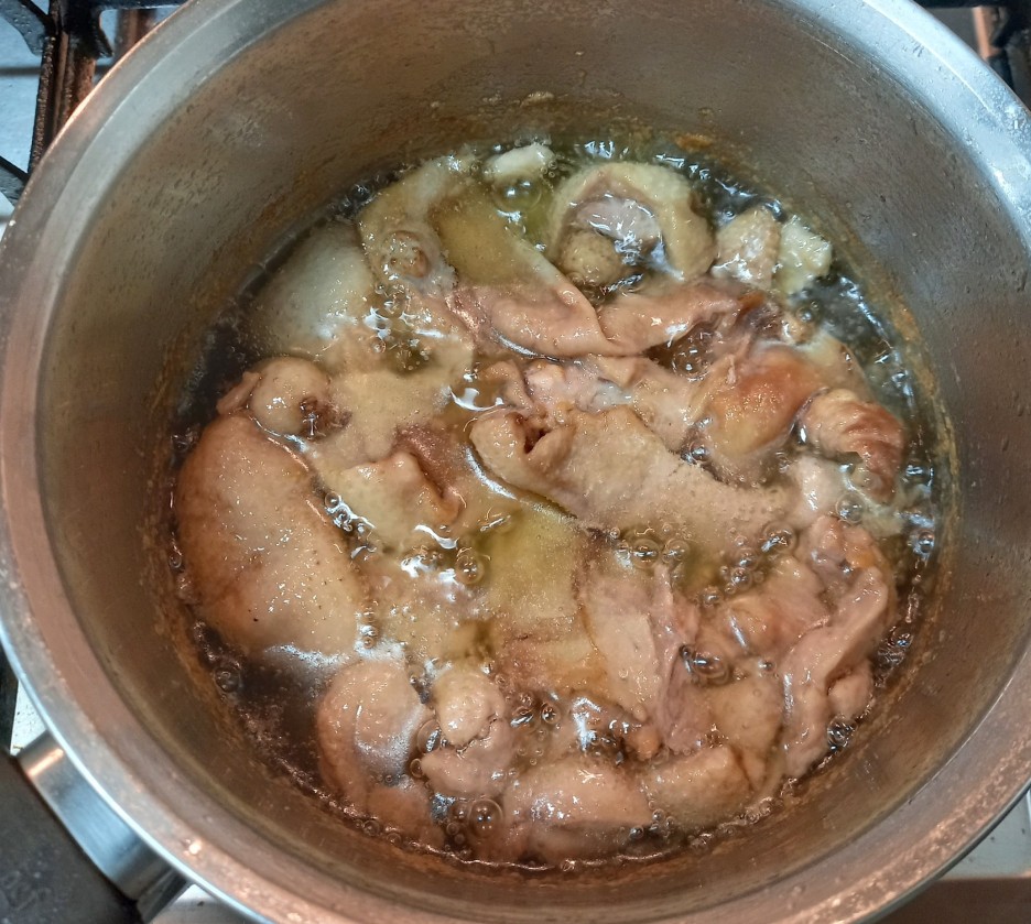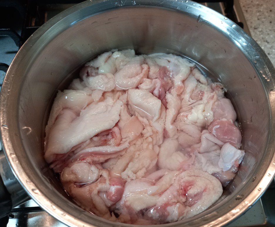 3. 지방과 껍질을 넣고 끓여줍니다!