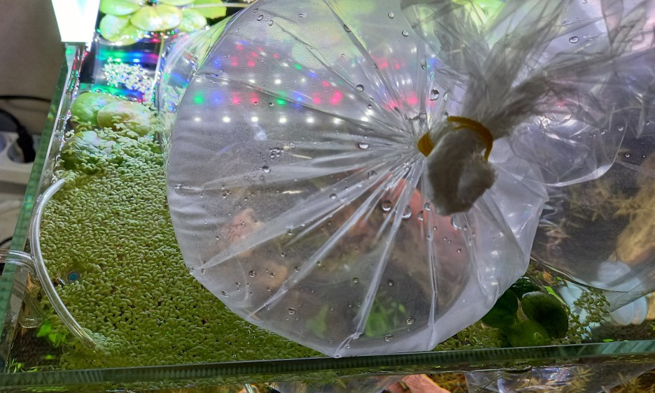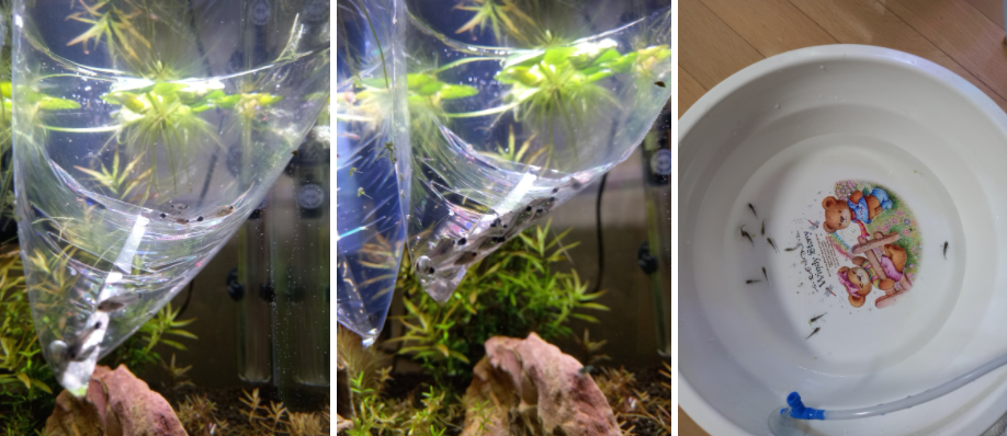 제일 먼저 그린 네온 테트라를 물 맞댐 해주었어요.
