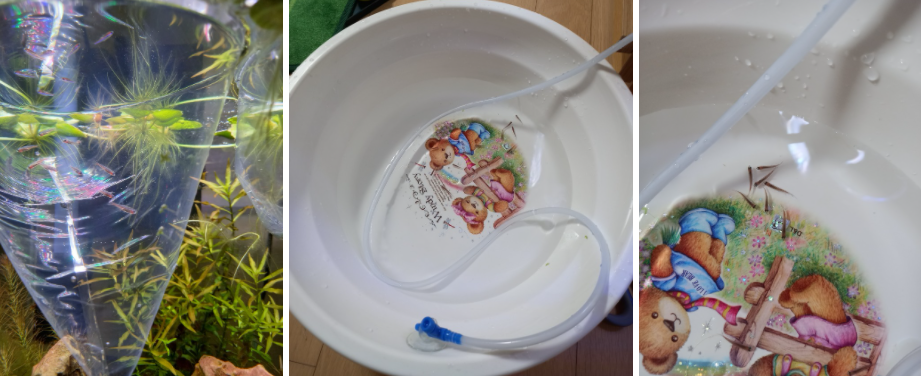 제일 먼저 그린 네온 테트라를 물 맞댐 해주었어요.