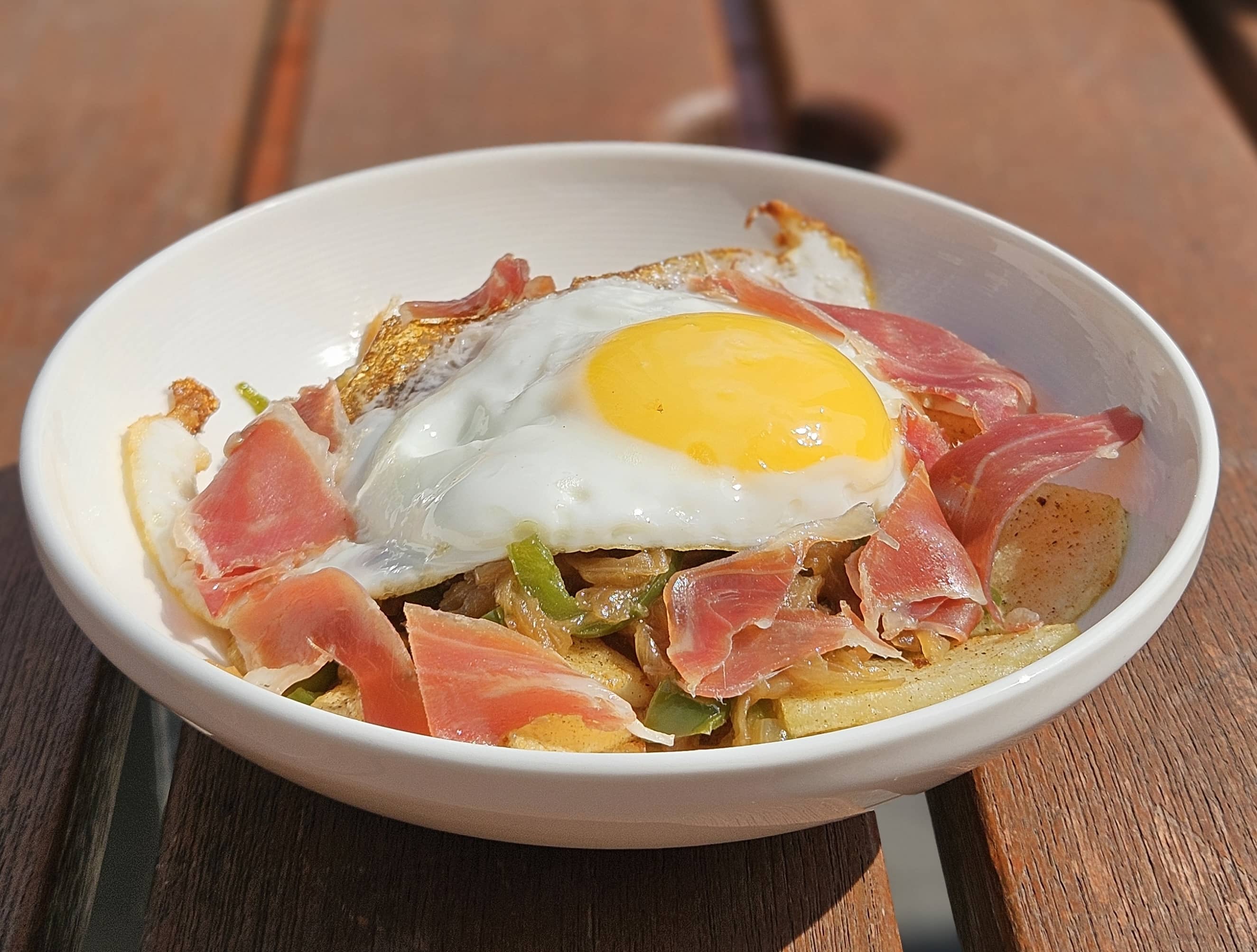 튀긴 감자에 하몽, 볶은 양파와 파프리카, 계란까지!!!