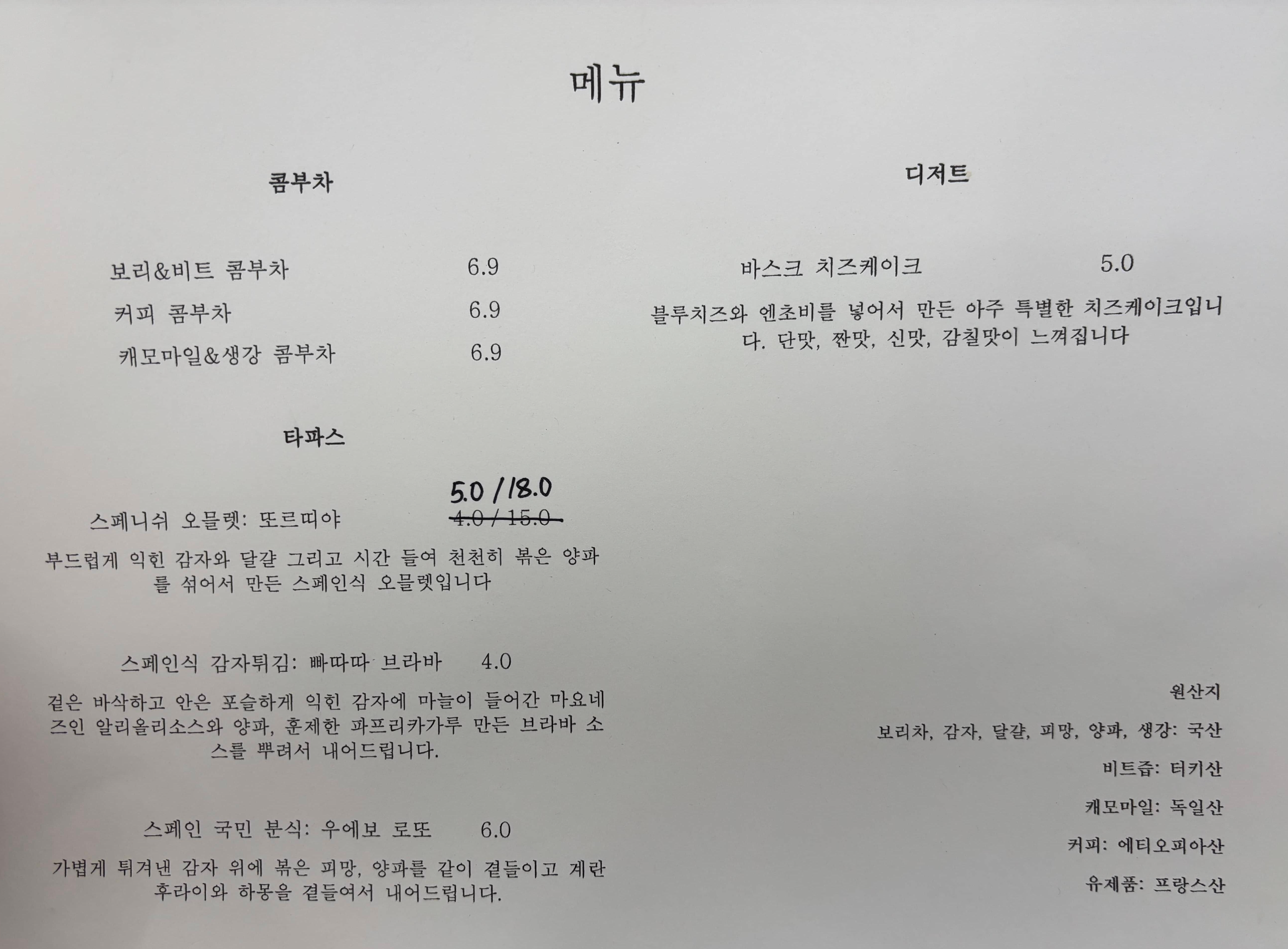 콤부차랑 잘 어울리는 간단한 타파스 3종류를 같이 판매하신다고 해요!