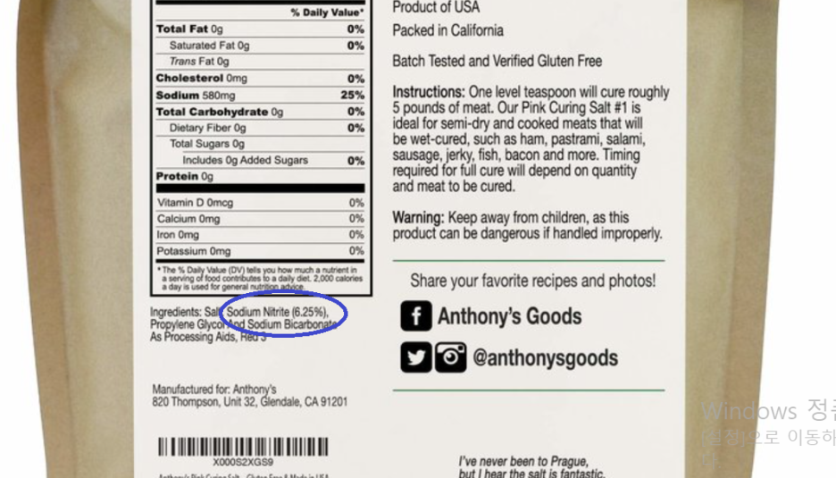 'Sodium nitrite (6%), Sodium Nitrate (4%)'이렇게 써져있어요